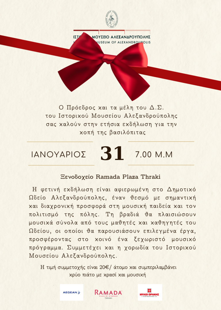 έναν χώρο μνήμης και γνώσης που αφηγείται την ιστορία της πόλης και της ευρύτερης περιοχής μέσα από πρόσωπα, γεγονότα και τεκμήρια του παρελθόντος. Στις συλλογές μας αποτυπώνεται η διαδρομή της πόλης στον χρόνο, από τις απαρχές της νεότερης ιστορίας έως τη σύγχρονη εποχή. Σας προσκαλούμε να περιηγηθείτε, να ανακαλύψετε και να γνωρίσετε την ιστορία που διαμόρφωσε την Αλεξανδρούπολη.